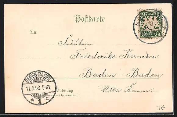 alte Ansichtskarte, gelaufen 1898, guter Zustand