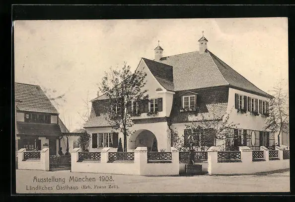 AK München, Ausstellung 1908, Ländliches Gasthaus
