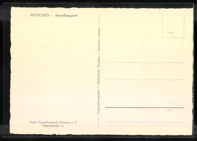 Personenbezogene Daten auf der Rückseite der Karte wurden durch blauen Textmarker unkenntlich gemacht. Die blauen Stellen sind auf die Vorderseite durchgeweicht und wirken sich negativ auf das Postkartenfoto aus