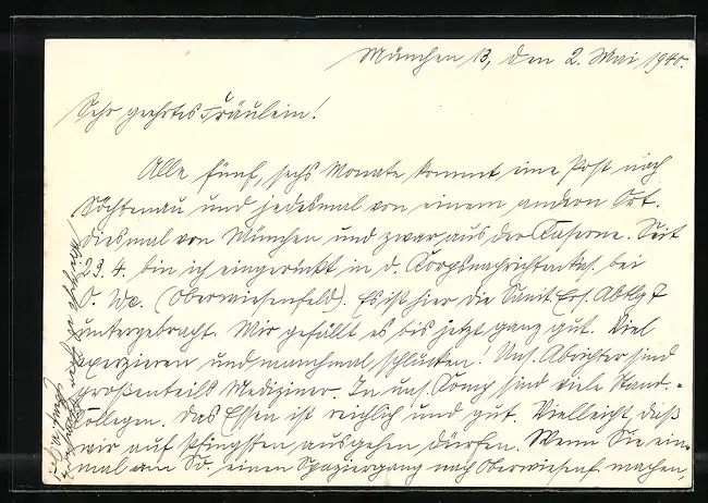 Personenbezogene Daten auf der Rückseite der Karte wurden durch blauen Textmarker unkenntlich gemacht. Die blauen Stellen sind auf die Vorderseite durchgeweicht und wirken sich negativ auf das Postkartenfoto aus