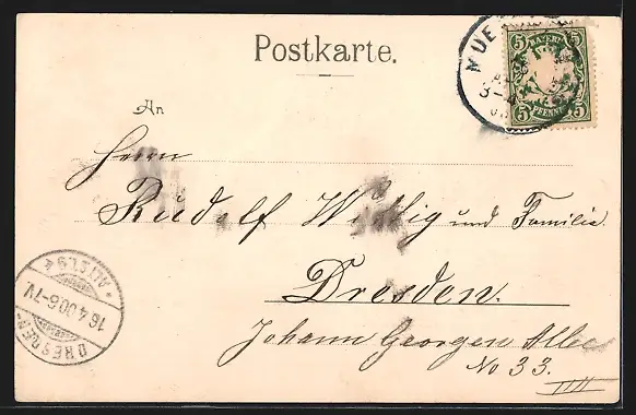 alte Ansichtskarte, gelaufen 1900, Eckknick oben rechts, guter Zustand