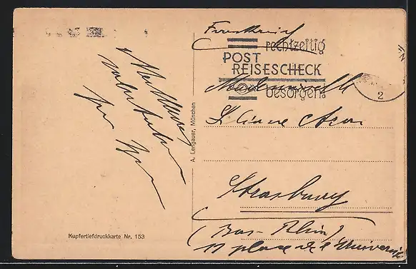 alte Ansichtskarte, gelaufen, Briefmarke entfernt, guter Zustand