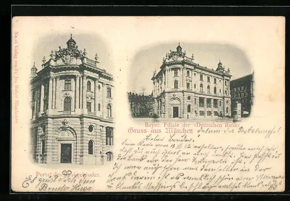 AK München, Bayer. Filiale der Deutschen Bank, Portal