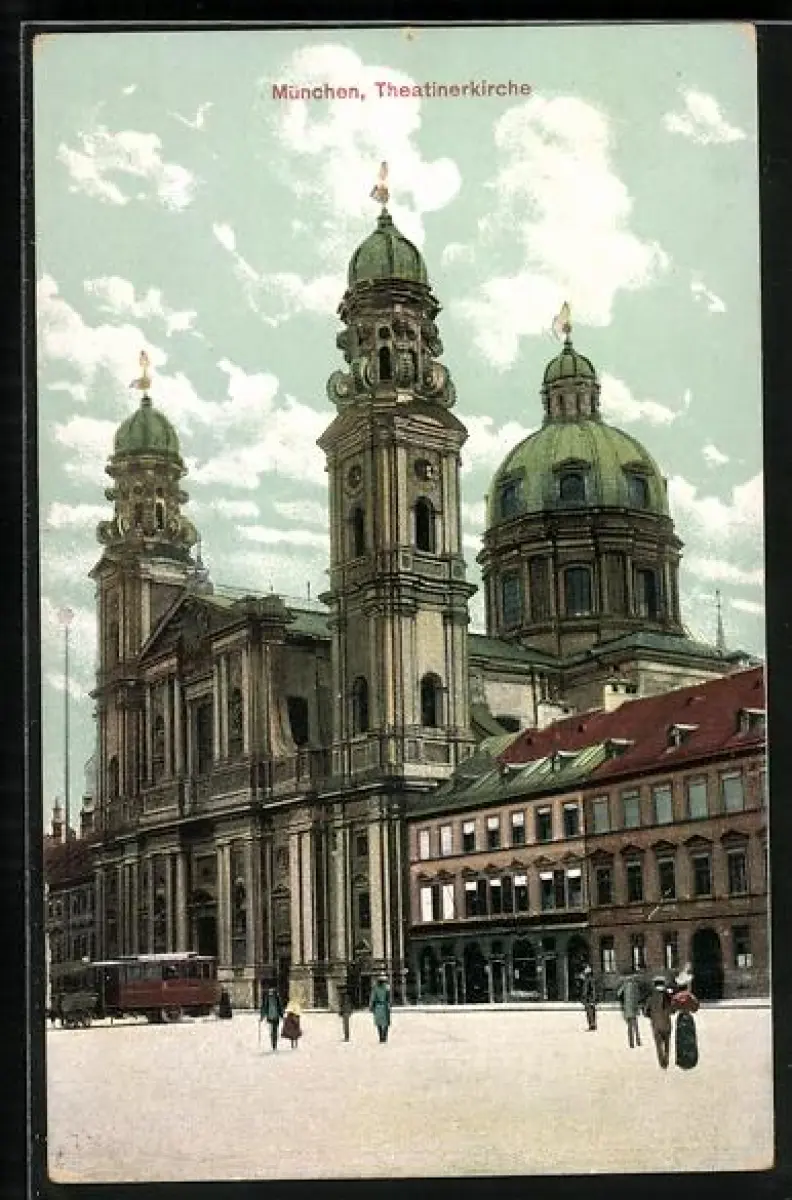 AK München, Blick auf Theatinerkirche am Odeonsplatz