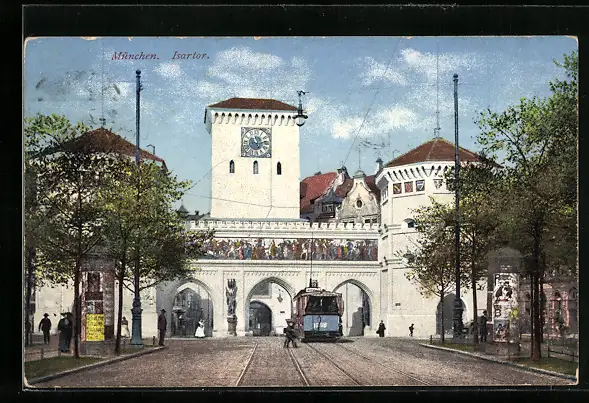 AK München, Blick auf das Isartor, Strassenbahn