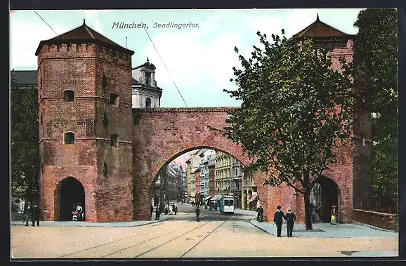 AK München, Blick auf das Sendlingertor mit Strassenbahn