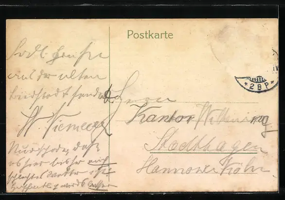 alte Ansichtskarte, gelaufen, Briefmarke entfernt, rückseitig Oberflächenschaden, guter Zustand