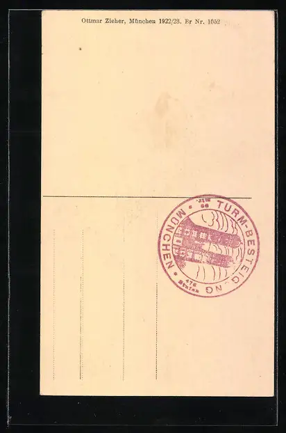 Personenbezogene Daten auf der Rückseite der Karte wurden durch blauen Textmarker unkenntlich gemacht. Die blauen Stellen sind auf die Vorderseite durchgeweicht und wirken sich negativ auf das Postkartenfoto aus