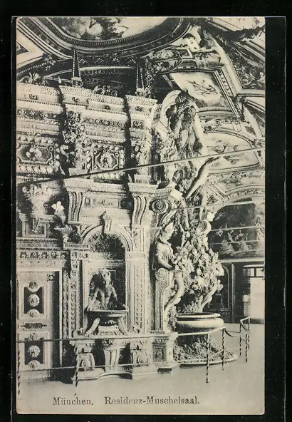 AK München, Blick in den Residenz-Muschelsaal