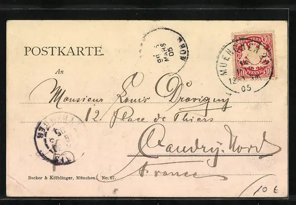 alte Ansichtskarte, gelaufen 1905, Eckknick re. unten, guter Zustand