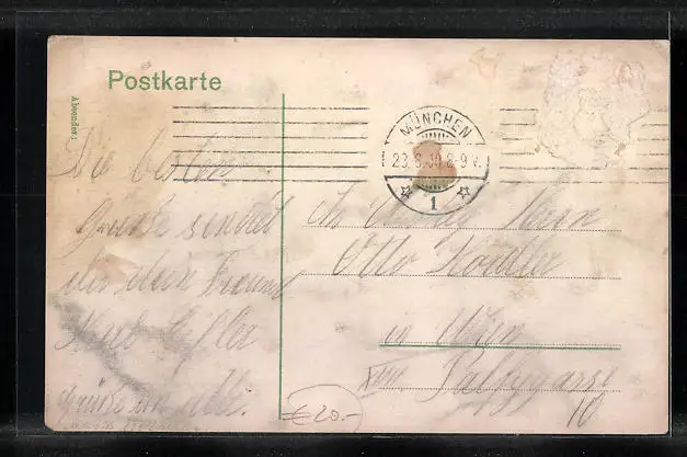 alte Ansichtskarte, gelaufen 1910, Briefmarke entfernt, rückseitig Oberflächenschaden, Eckknick li. oben, guter Zustand