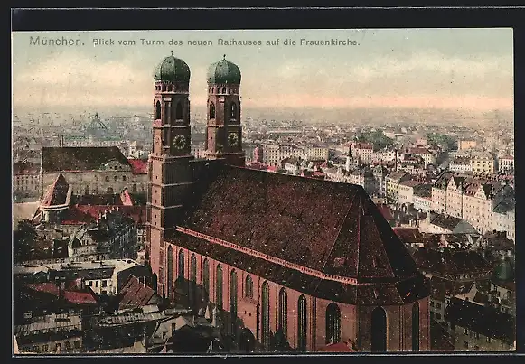 AK München, Blick vom Turm des neuen Rathauses auf die Frauenkirche