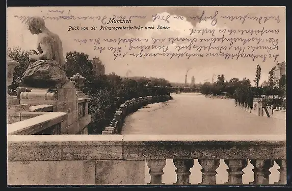 AK München, Blick von der Prinzregentenbrücke nach Süden