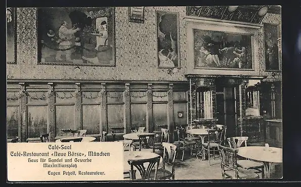 AK München, Café-Restaurant Neue Börse, Eugen Petzolt