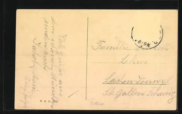 alte Ansichtskarte, gelaufen, Briefmarke entfernt, guter Zustand