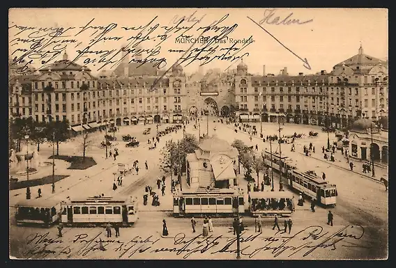 AK München, Das Rondell mit Strassenbahnen