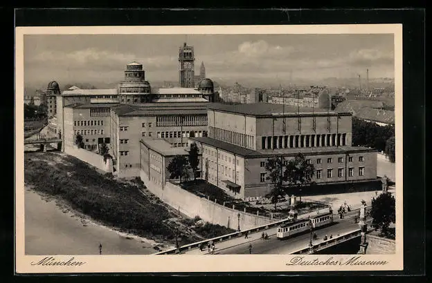 AK München, Deutsches Museum mit Strassenbahn