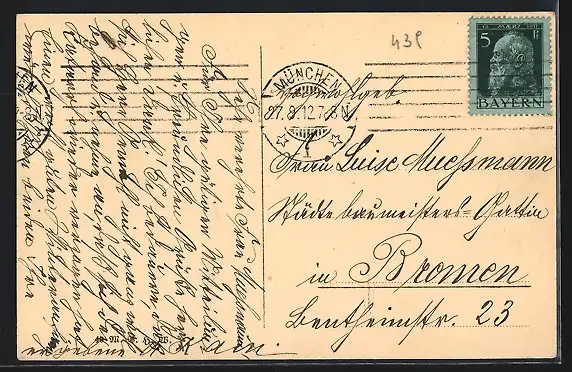 gelaufen 1912, Stempelspur, guter Zustand
