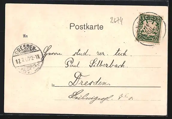 alte Ansichtskarte, gelaufen 1900, guter Zustand