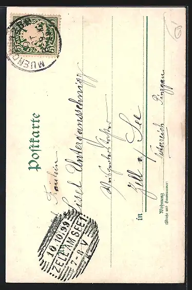 alte Ansichtskarte, gelaufen 1899, guter Zustand