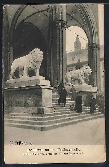 AK München, Die Löwen an der Feldherrnhalle