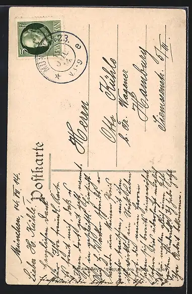 alte Ansichtskarte, gelaufen 1914, Eckknick unten re., guter Zustand