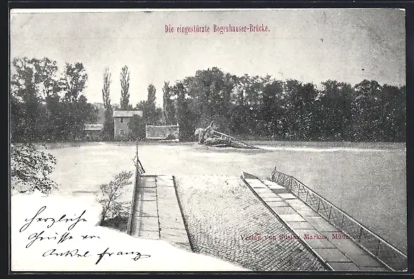 AK München, Die eingestürzte Bogenhauser-Brücke
