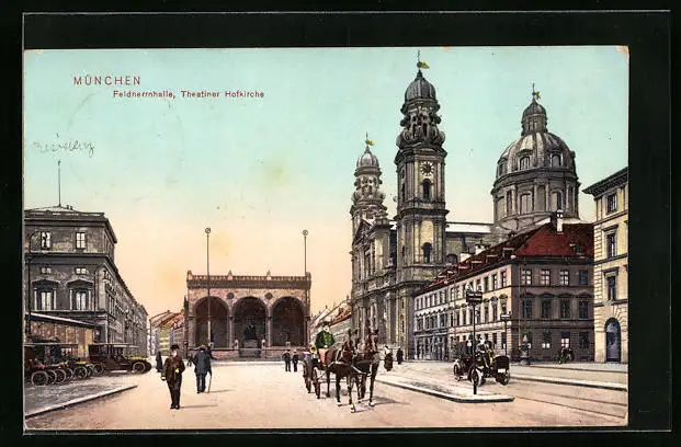 AK München, Feldherrnhalle und Theatiner Hofkirche