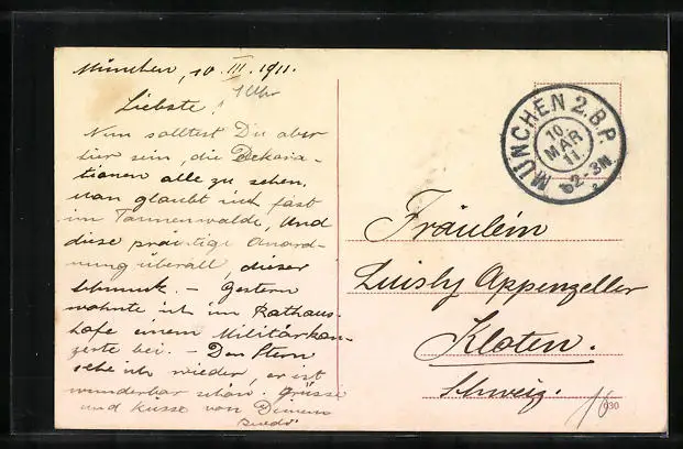 alte Ansichtskarte, gelaufen 1911 als Feldpost, Stempelspur, guter Zustand