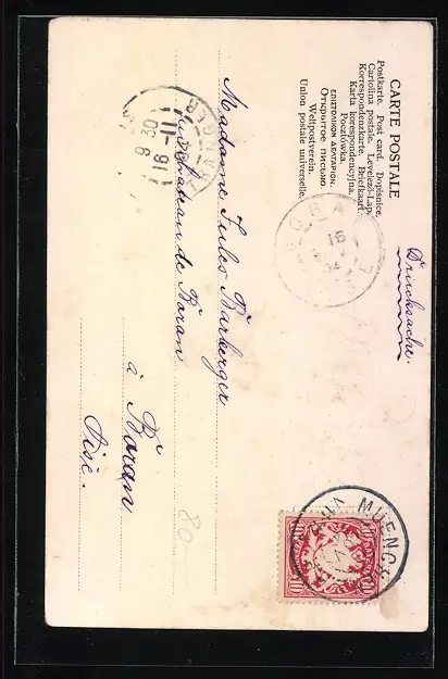 gelaufen 1904, Eckknick re. unten, Bugspur re. unten, guter Zustand