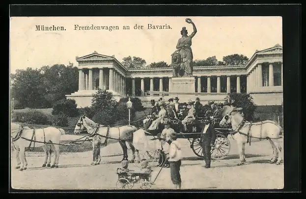 AK München, Fremdenwagen an der Bavaria, Ruhmeshalle