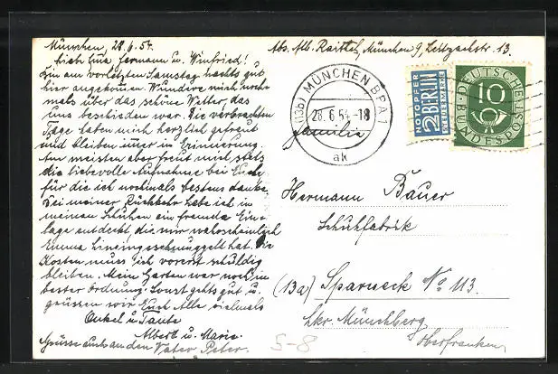 alte Ansichtskarte, gelaufen 1954, guter Zustand