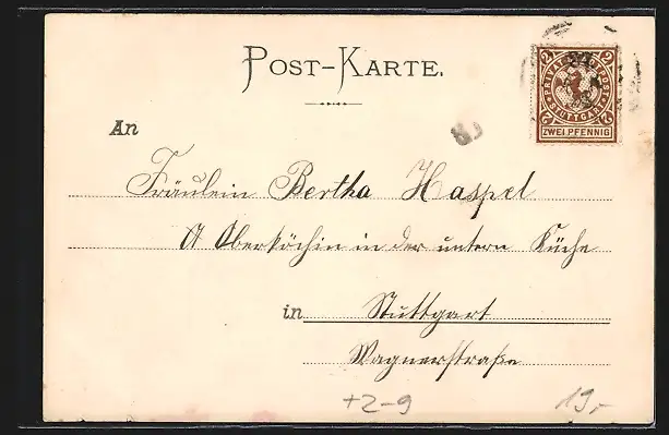alte Ansichtskarte, gelaufen 1898, Kanten bestoßen, guter Zustand