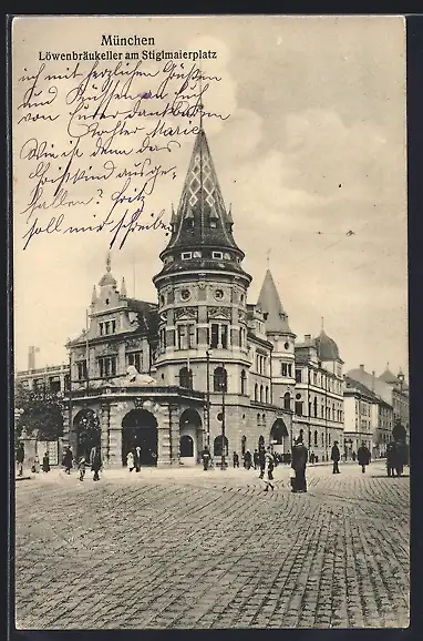 AK München Gasthaus Löwenbräu-Keller am Stiglmaierplatz