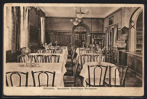 AK München, Gaststätte Sendlinger Weinbauer, Plingenserstr. 68, Innenansicht