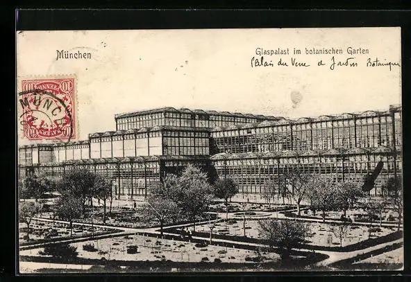 AK München, Glaspalast im botanischen Garten
