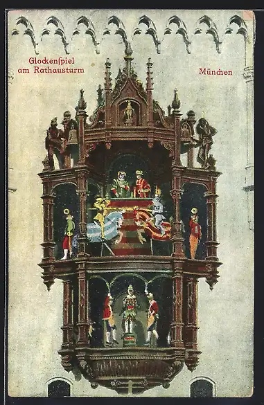 AK München, Glockenspiel am Rathausturm
