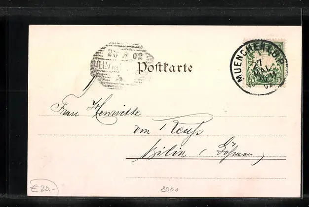 alte Ansichtskarte, gelaufen 1902, guter Zustand