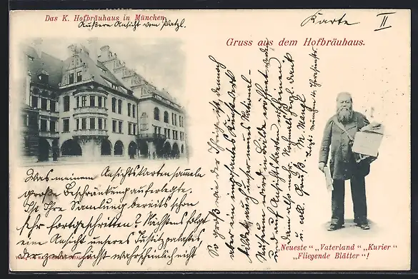 AK München, Hofbräuhaus, Mann mit Zeitungen
