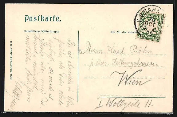 alte Ansichtskarte, gelaufen 1909, guter Zustand