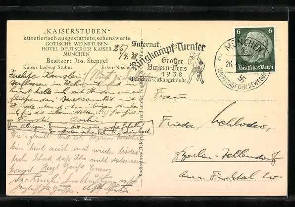 alte Ansichtskarte, gelaufen 1938, Eckknick li. oben, guter Zustand