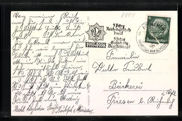 alte Ansichtskarte, gelaufen 1938, Eckknick oben re., guter Zustand