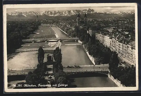 AK München, Isarpartie mit Gebirge