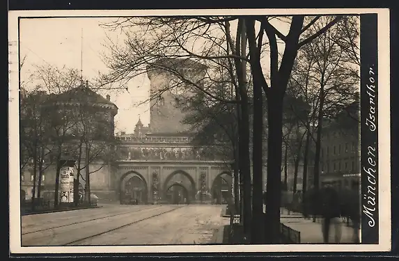 AK München, Isartor mit Strassenpartie