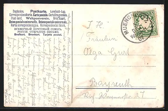 alte Ansichtskarte, gelaufen 1907, Abriebspur u. Eckknick oben li., guter Zustand