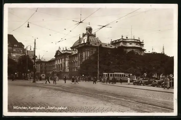 AK München, Justizpalast am Karlsplatz Strassenbahn
