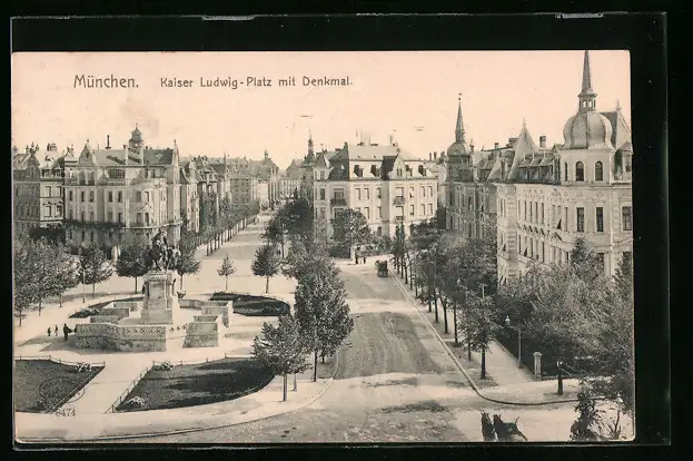 AK München, Kaiser Ludwig-Platz mit Denkmal