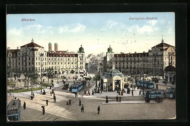 AK München, Karlsplatz-Rondell mit Strassenbahn