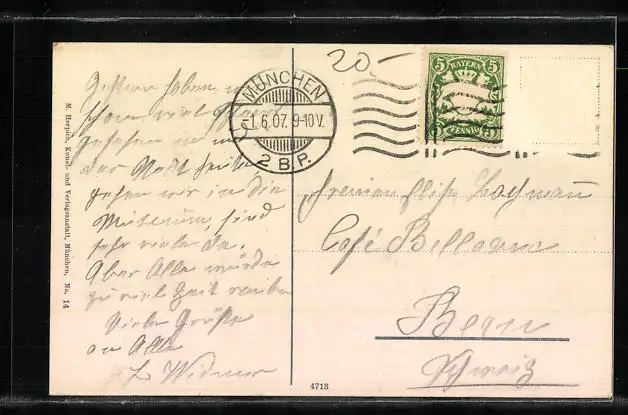 alte Ansichtskarte, gelaufen 1907, Briefmarke tw. entfernt, rückseitig Oberflächenschaden, Stempelspur, guter Zustand