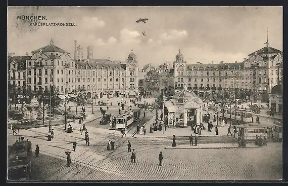 AK München, Karlsplatz-Rondell mit Strassenbahn